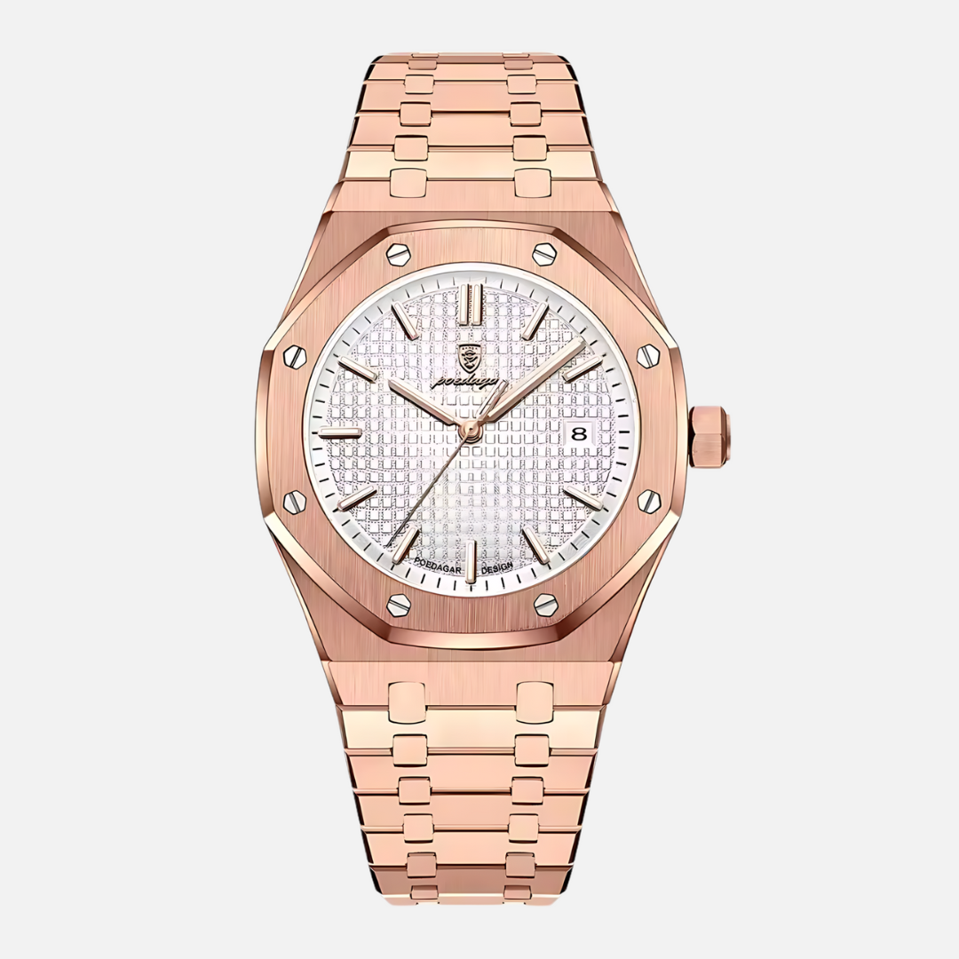 Cada relógio de nossa coleção é meticulosamente construído usando materiais como aço inoxidável 316L, idênticos aos utilizados pelas principais marcas de relógios, garantindo tanto durabilidade quanto resistência superior à água. Nossos relógios possuem caixas e vedações completamente à prova d'água, epitomizando o ápice do luxo duradouro.