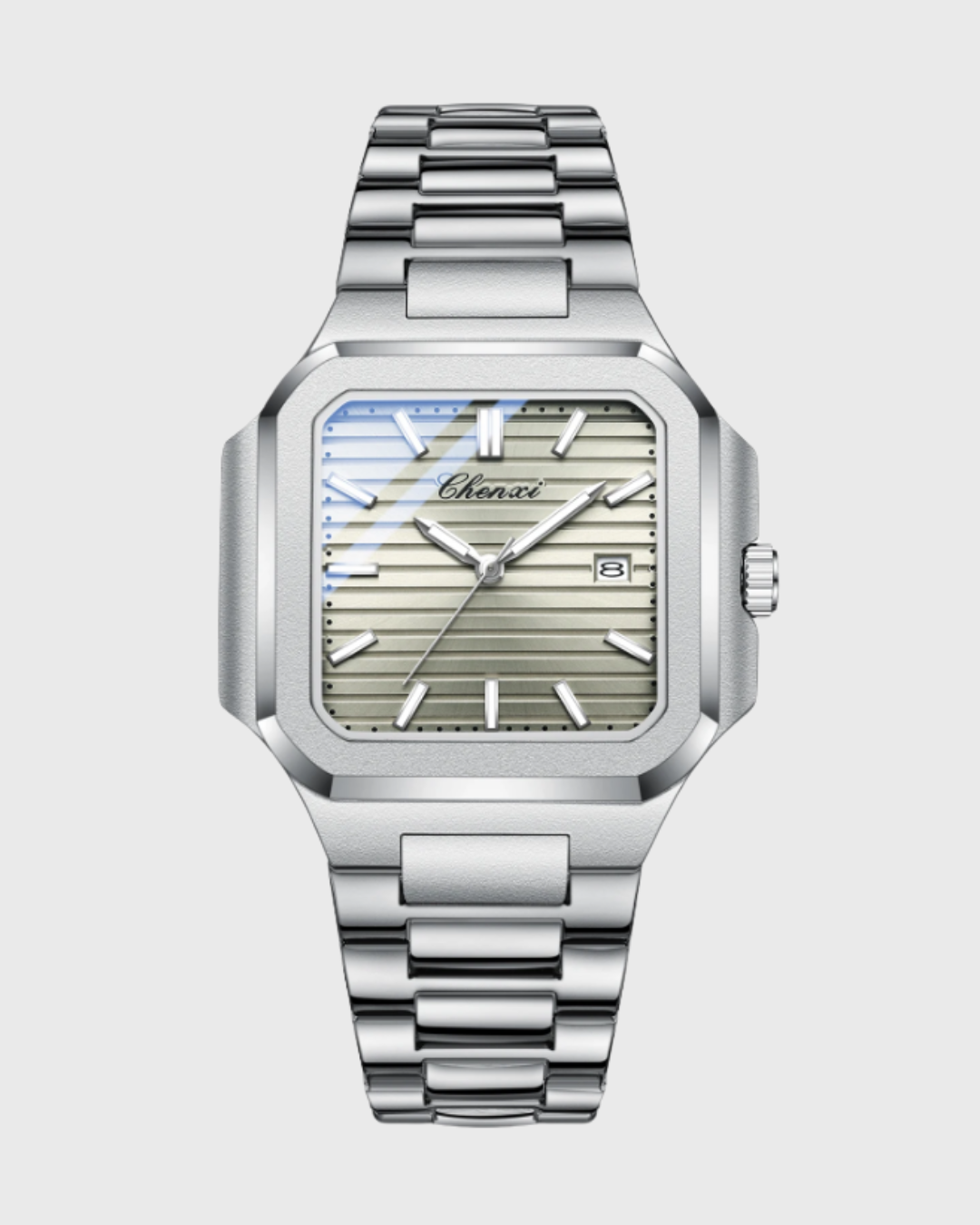 Com mostrador maior e detalhes funcionais, este relógio foi projetado para uma simplicidade ousada. Feito para homens que se movem com propósito — combinando praticidade e design atemporal.